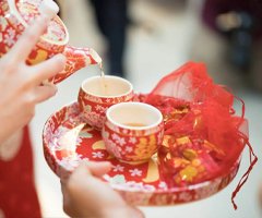In Chinese culture, the tea ceremony is a significant tradition for the bride and groom to pay respect and show gratitude towards their parents for all the years of nurture and love. In turn, the family will bless the newlyweds as they marry as husband and wife and the couple is then formally introduced into each other’s family.